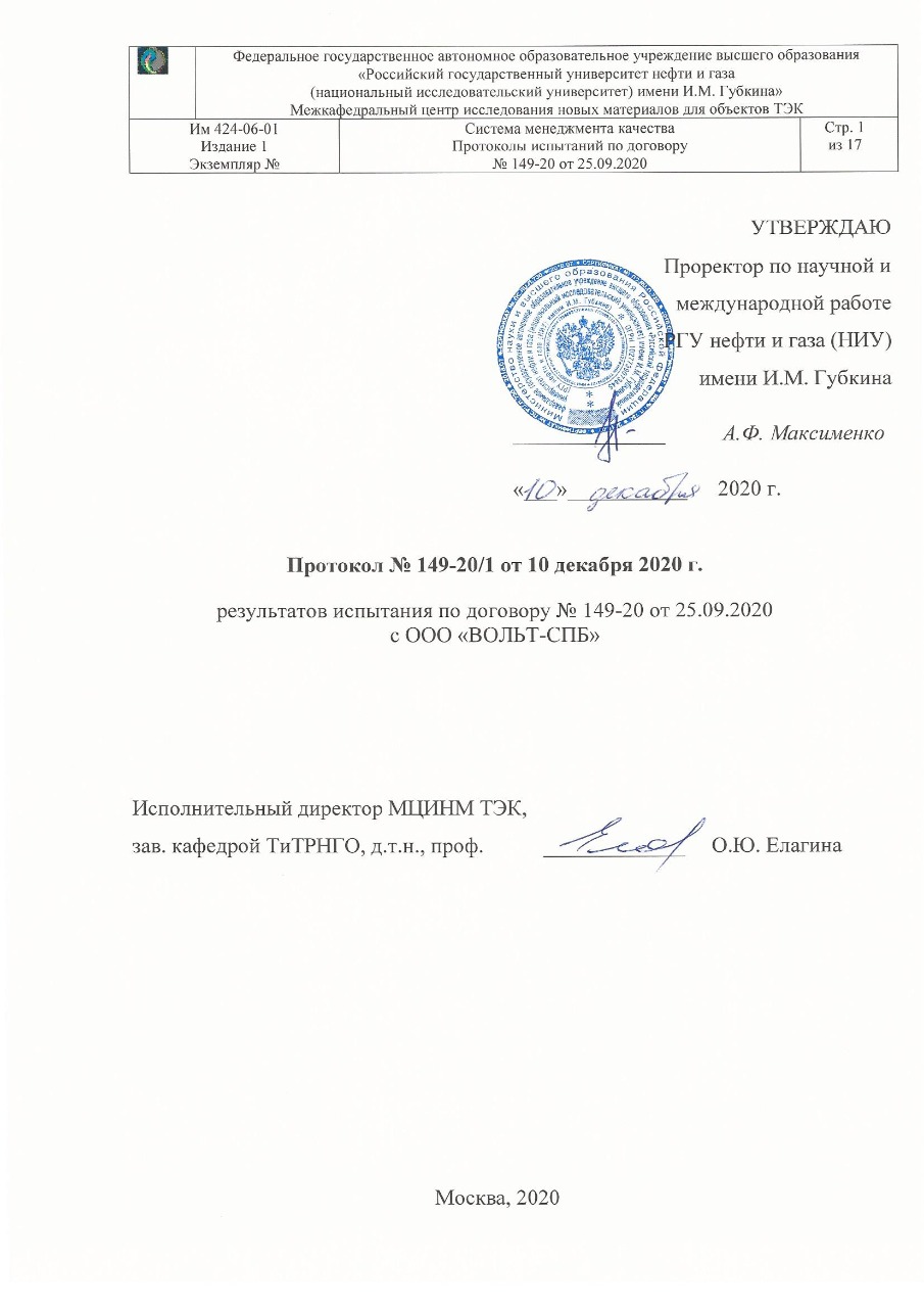 В декабре 2020 года ООО «ВОЛЬТ-СПБ» получило Протокол №149-20/1 результатов испытаний активных соляных электродов, изготавливаемых по ТУ 3418-001-65897260-2012, в РГУ нефти и газа им. И.М. Губкина.
